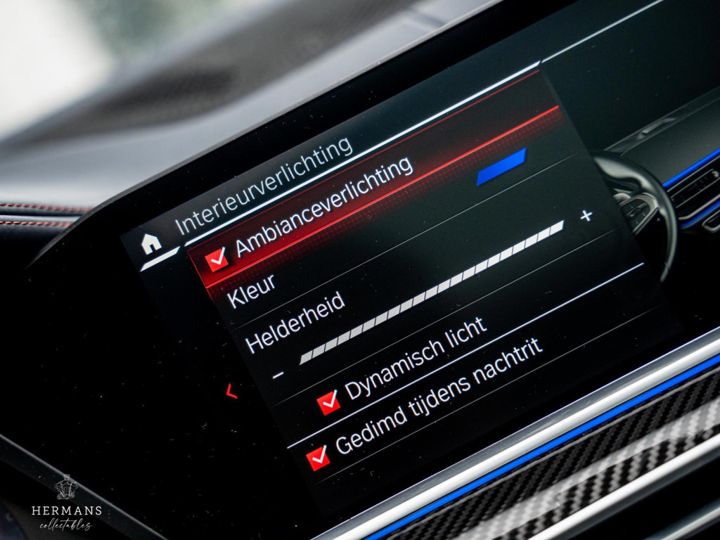 De BMW heeft de volgende extra opties: BMW Individual, BMW Laserlight, Schuif/kanteldak ( Sky Lounge ), Head-up display, Keyless entry, Soft-close, Memory seats, Stoelmassage, Stuurwielverwarming, Stoelverwarming voor en achter, Stoelverkoeling voor, Alcantara hemelbekleding, Sfeerverlichting, Bekerhouders gekoeld/verwarmd, Ambient Air pakket, BMW Connected Professional, Parking Assistent Plus met Remote 3D view & 360* camera, Adaptive Cruise Control en BMW Driving Assistant Professional met o.a. dodehoeksensoren.