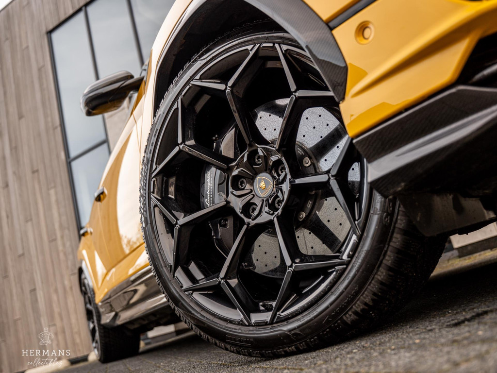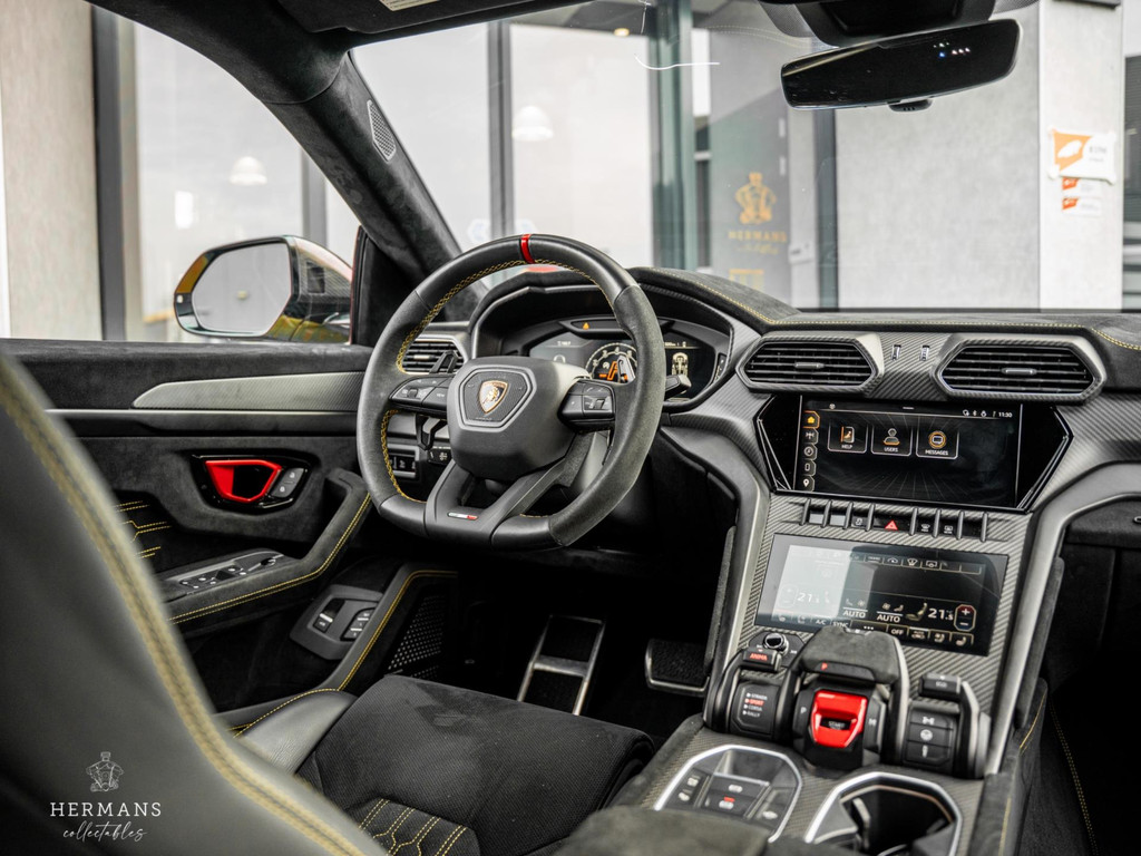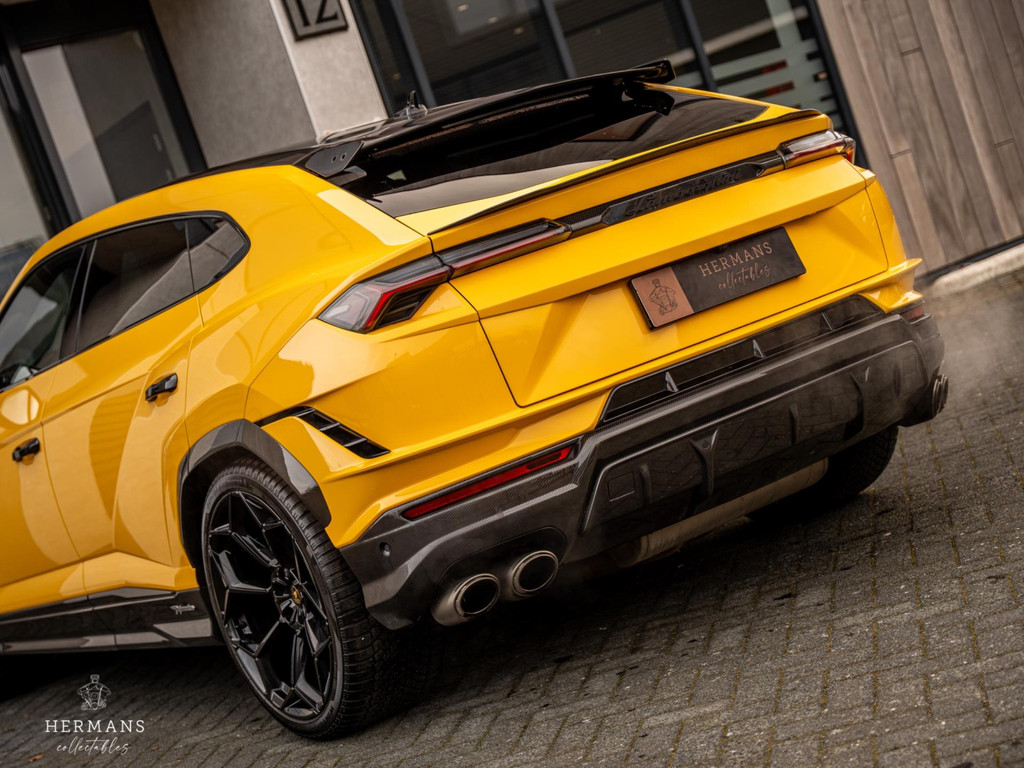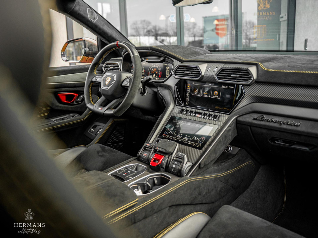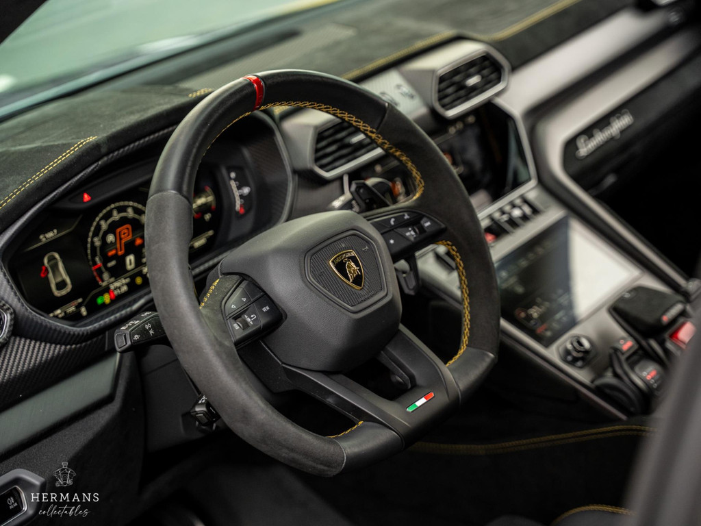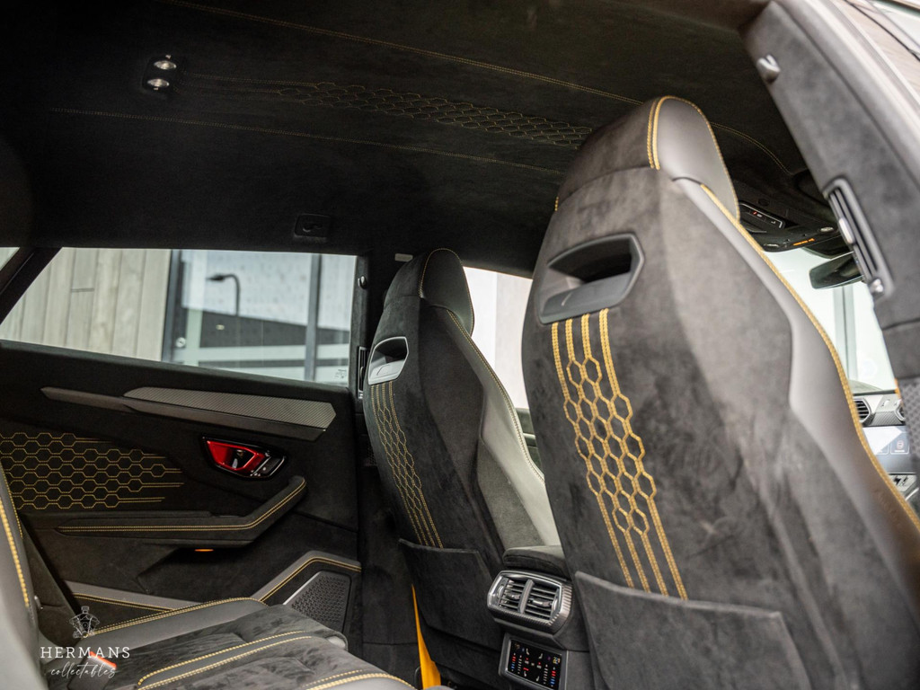 De Urus is uitgevoerd in "Giallo Auge" in combinatie met het volledig "Dark Package on Alcantara" interieur in "Nero Ade" met de "Giallo Taurus" stiksels, Performante trim en carbon afwerking. Ook heeft de Lamborghini de keramische schijven met zwarte remklauwen achter de 23" "Pelope Shiny Black" velgen, volledige "Shiny Carbon" pakket aan de buitenzijde (o.a. motorkap & dak), het Sport stuurwiel in leder/alcantara met "Giallo Taurus" stiksels en "Dark Chrome Bezel & Red Marker". Zelfs de veiligheidsgordels zijn in het "Giallo Taurus" uitgevoerd, alsmede de dubbele contraststiksels van de vloermatten met piping.
