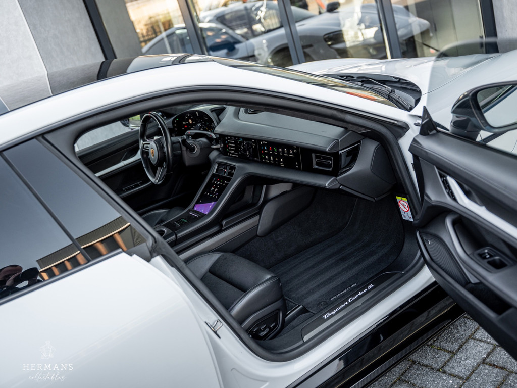 De Porsche beschikt over de volgende extra opties: Keramisch remsysteem (PCCB) met rode remzadels, Luchtvering (PASM), Passenger Display, Carbon Sideskirts, Carbon Splitter, Carbon Diffuser, Sport-Chrono, Bose Soundsysteem, Glazen panoramadak, 18-way seats, Sfeerverlichting, 4-Zone airconditioning, Stoelverwarming voor & achter, Stoelverkoeling voor, GT-Sportstuurwiel, Elektr. verstelbaar stuurwiel, Alcantara hemelbekleding, Turbo S logo in hoofdsteunen, Standkachel, Warmtepomp (temperatuur optimalisatie accu voor snelladen), Comfort-sleutel (Keyless Entry & Keyless Start), Matrix-LED koplampen incl. PDLS+, Intelligent Range Manager, Homelink Garagedeuropener, Torque Vectoring Plus (PTV Plus), Stuurbekrachtiging Plus (4-wielbesturing), 360* camera, Porsche InnoDrive incl. Adaptieve Cruise Control met Stop&Go-funtie, Active Lane Assist en Dodehoekdetectie.